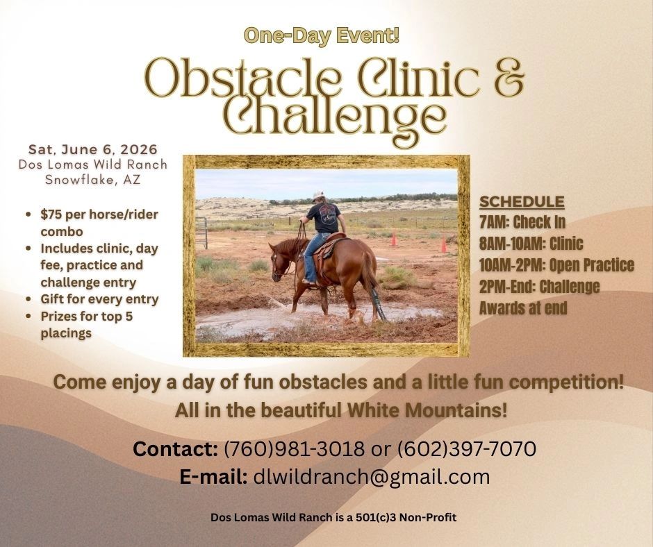 Entry Includes: Obstacle clinic, day use facility fee, open obstacle practice and Challenge entry (challenge is optional, all other activities mandatory)